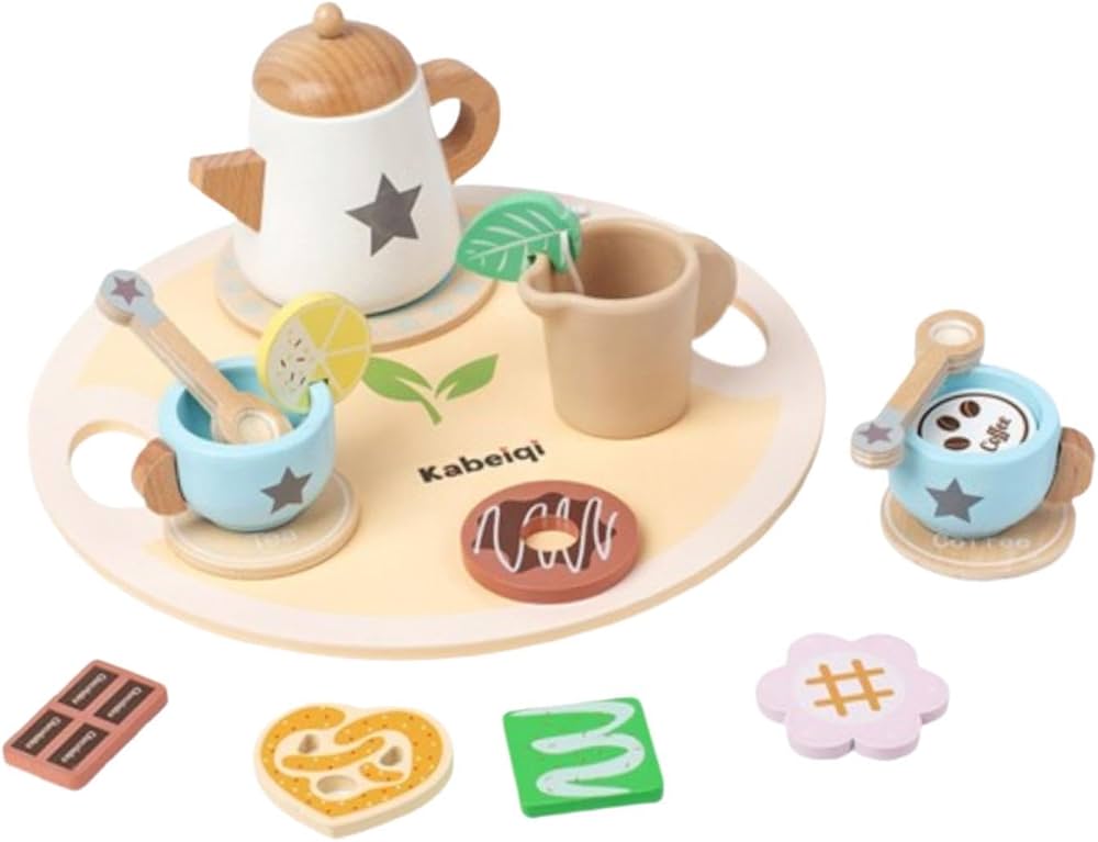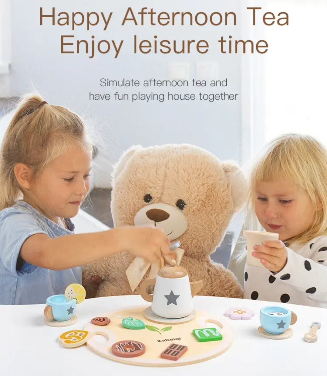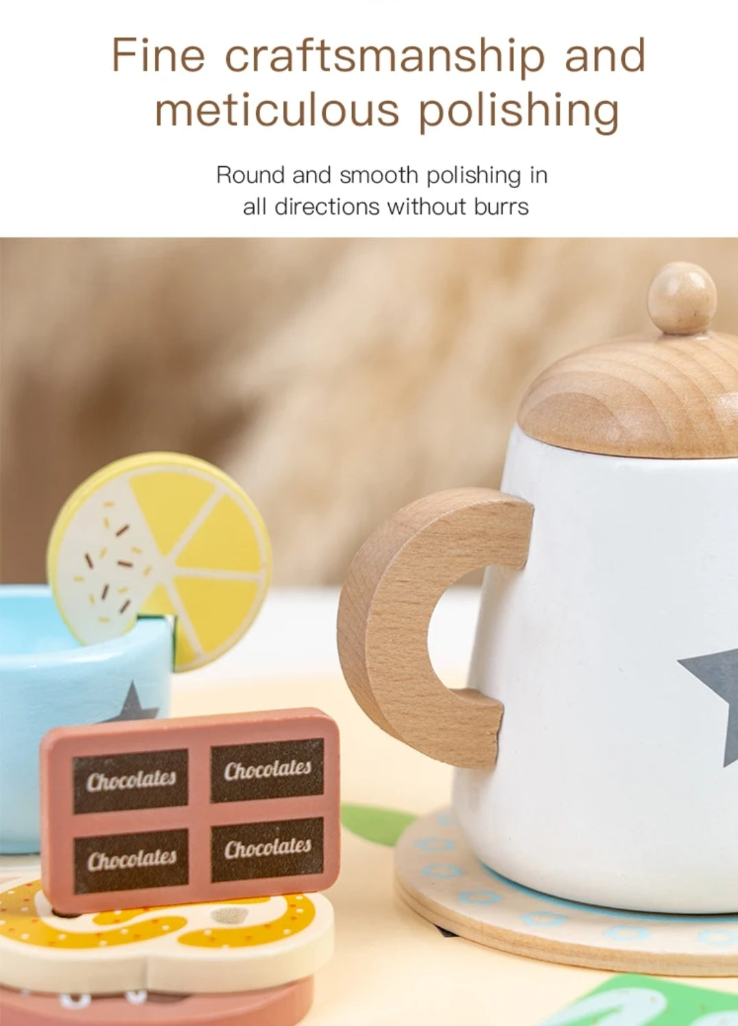 Wooden Afternoon Tea Set, designed for children's pretend play. Key features include: