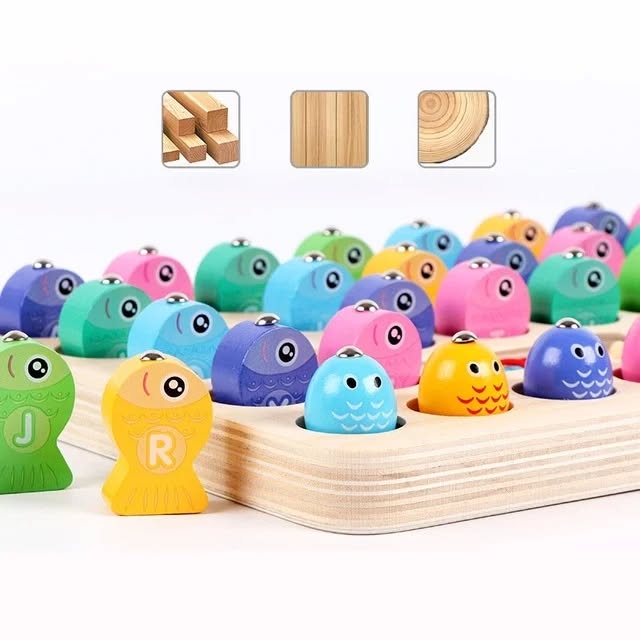 ✔️Safe toys - children's fishing toys that are made of durable natural wood with soft edges that are safe to hold and touch. Small fish are mixed with water-based and non-toxic paint. High-quality materials will ensure the safety of toys for boys and girls.