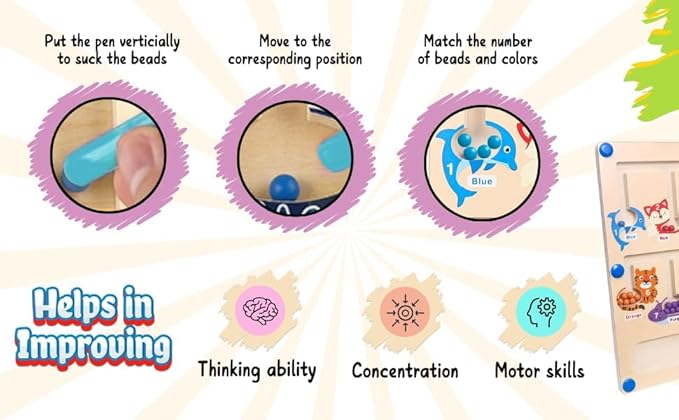 Introduce your toddler to a world of colors and counting with our Colorful Magnetic Toddler Puzzle. Designed with little learners in mind, this educational toy offers a hands-on approach to learning essential skills. Watch as they explore and engage with 55 magnetic beads in 10 vibrant colors, discovering the joy of matching and counting.