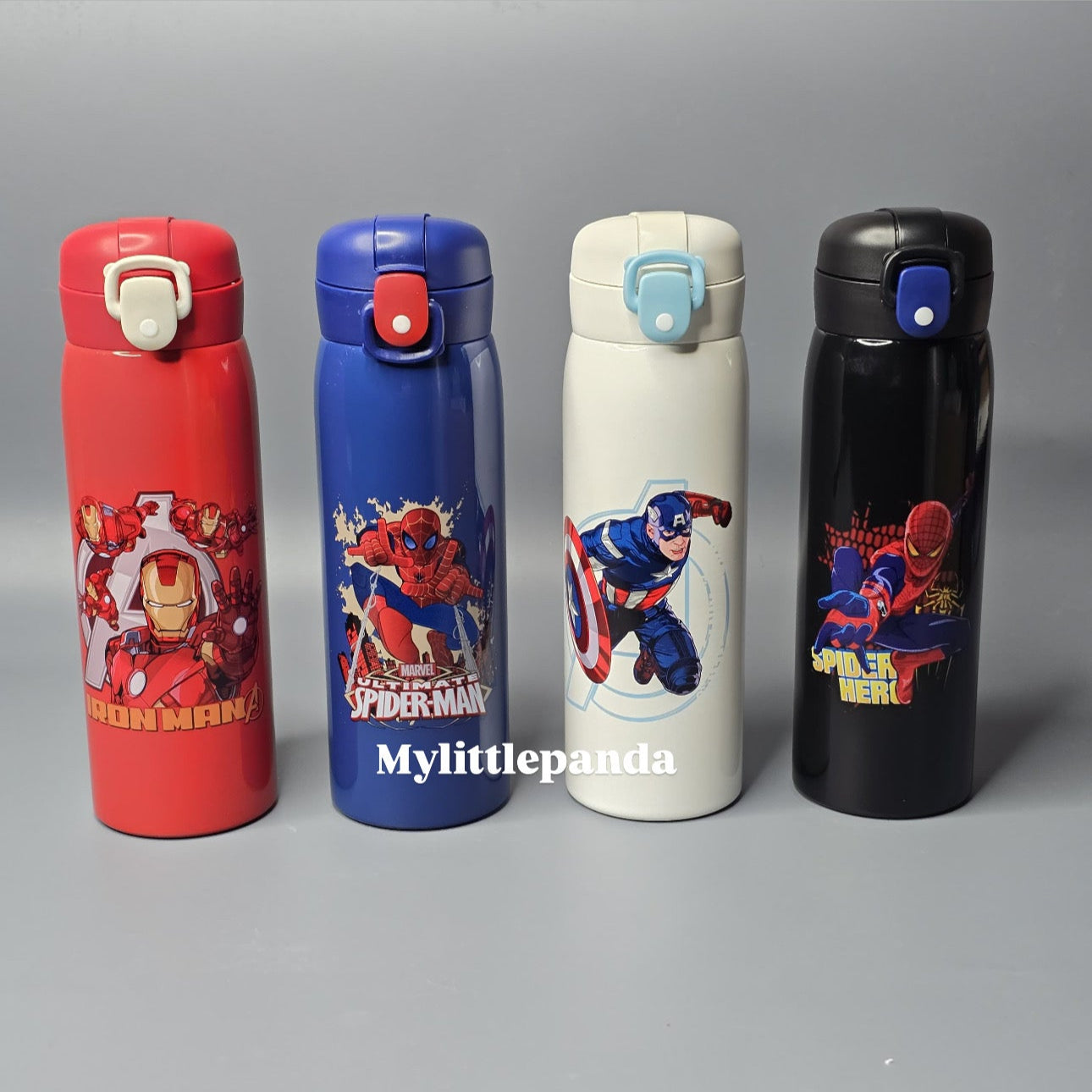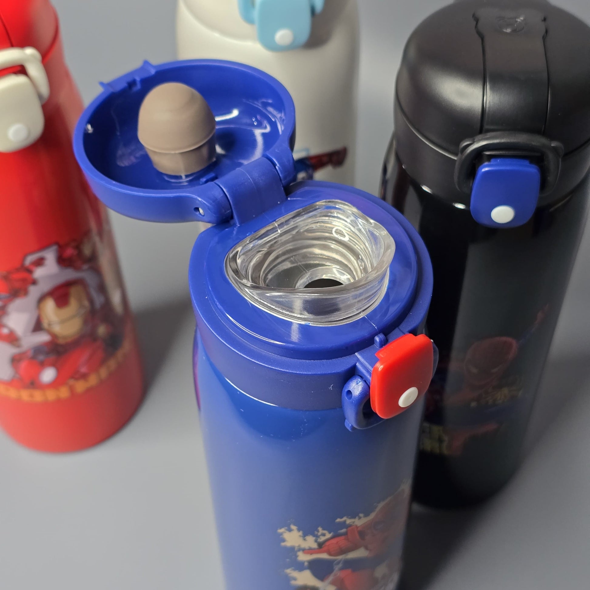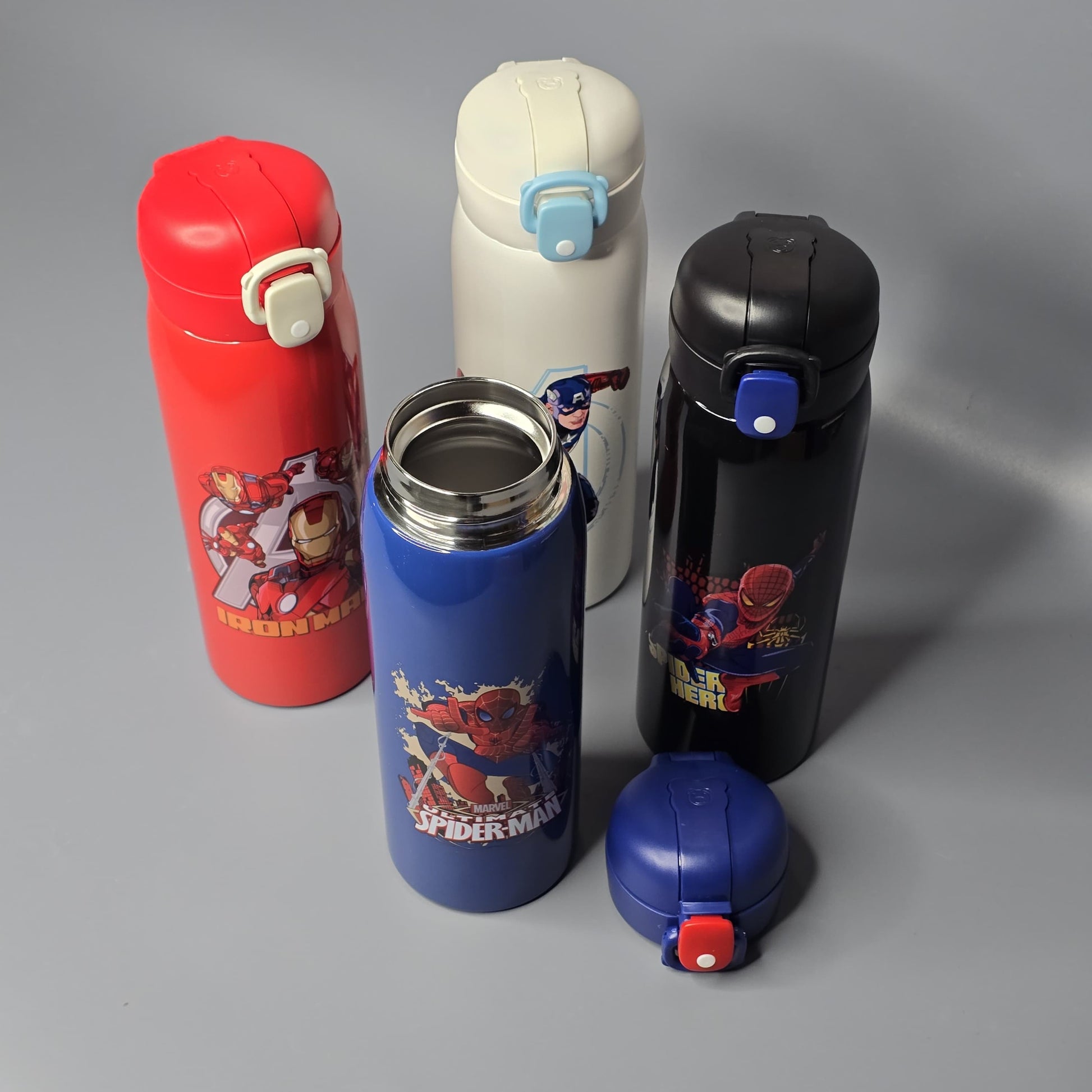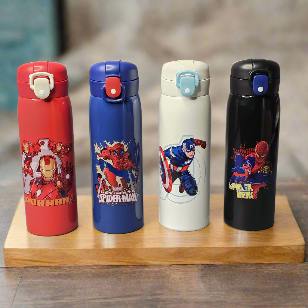 Avenger Theme Stainless steel water bottle, likely designed for children. Here's a summary of its features: