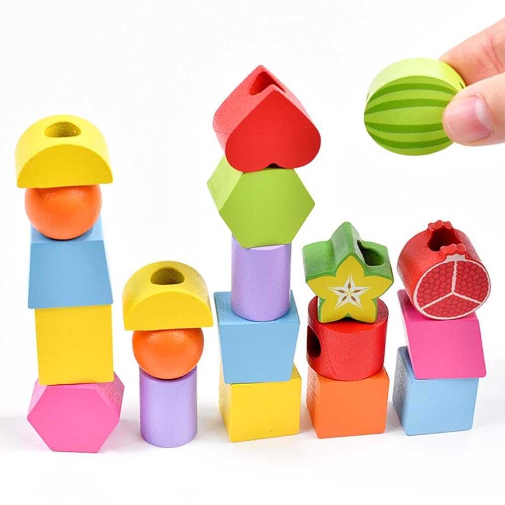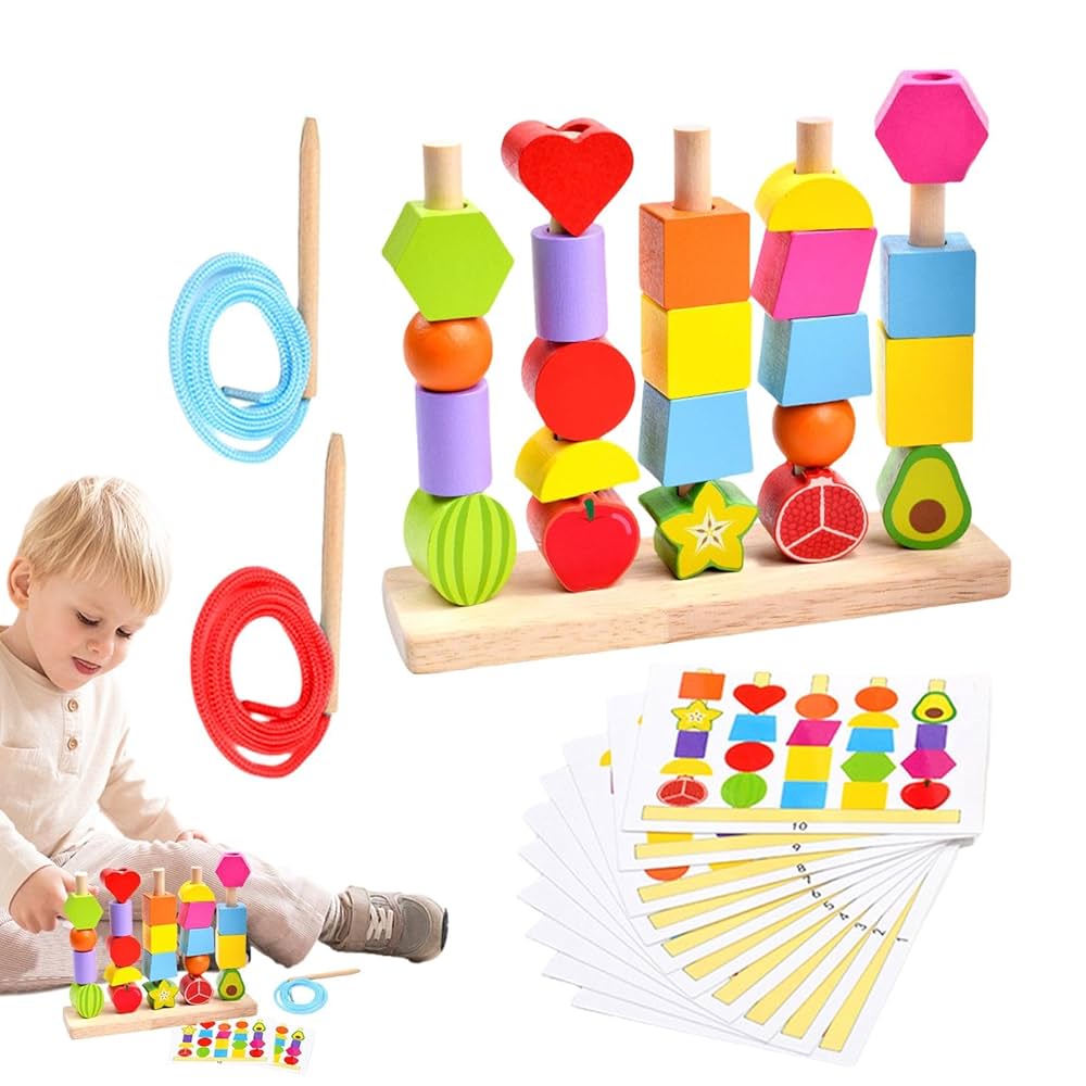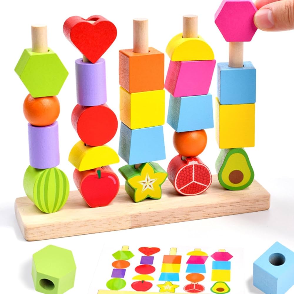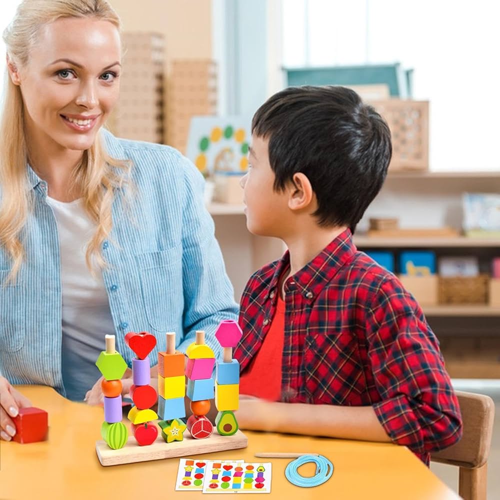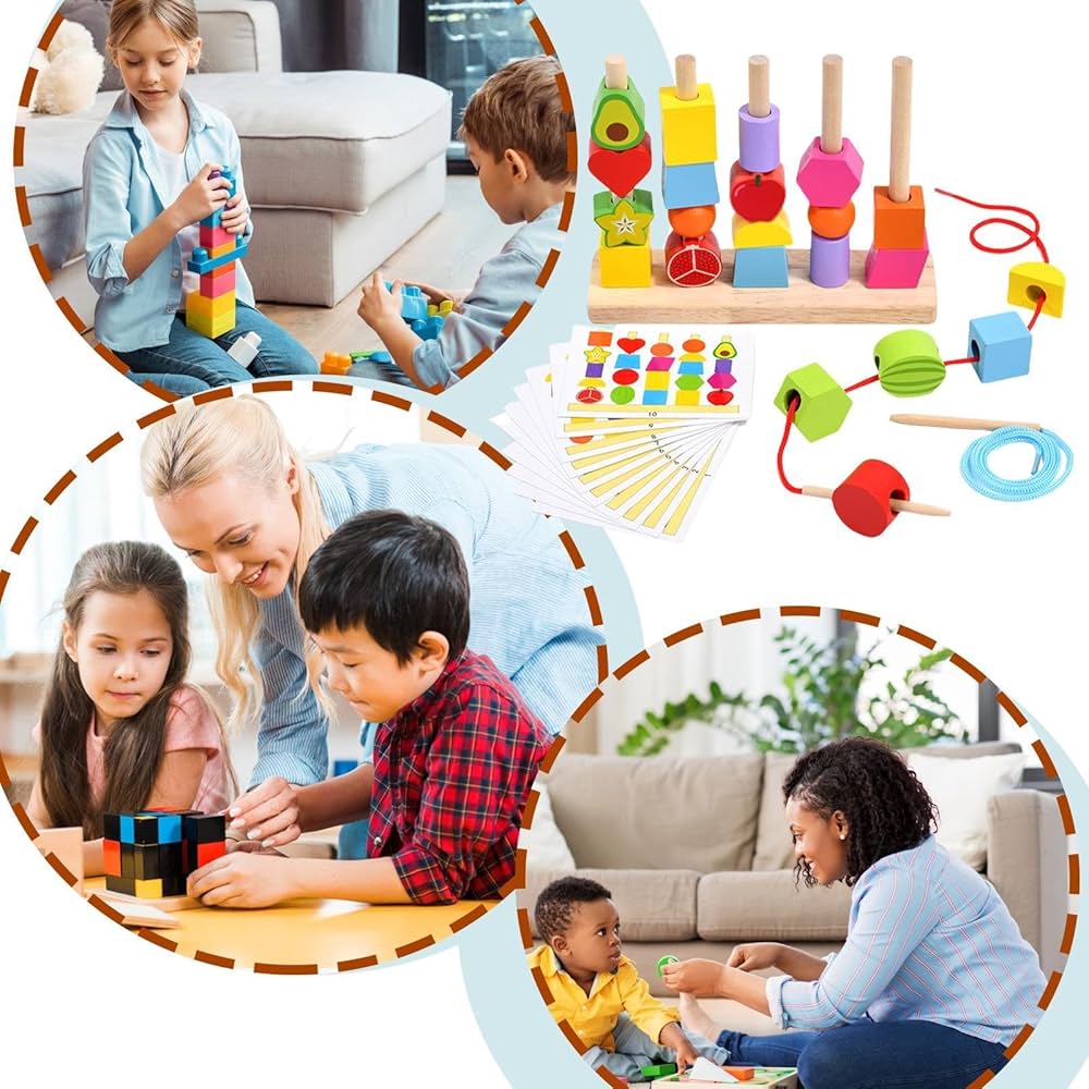 The Montessori Wooden Beads Toys incorporate color recognition and shape matching elements, stimulating children’s intellectual growth in a playful and engaging way.