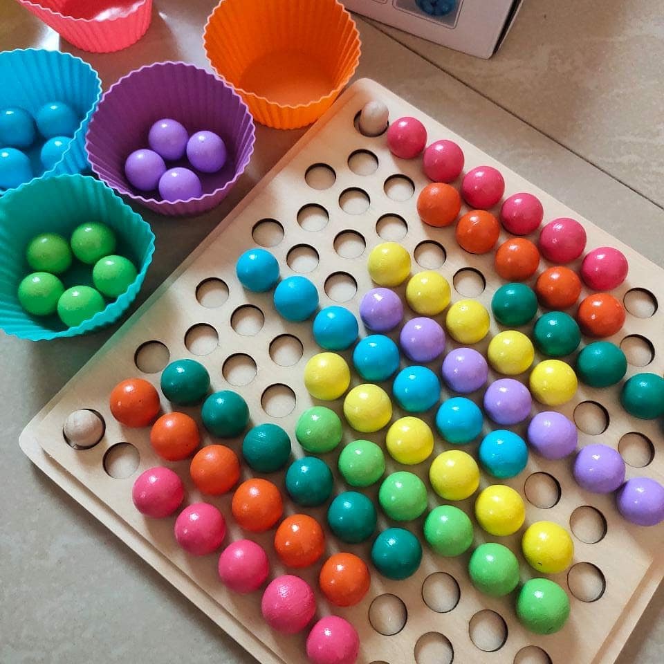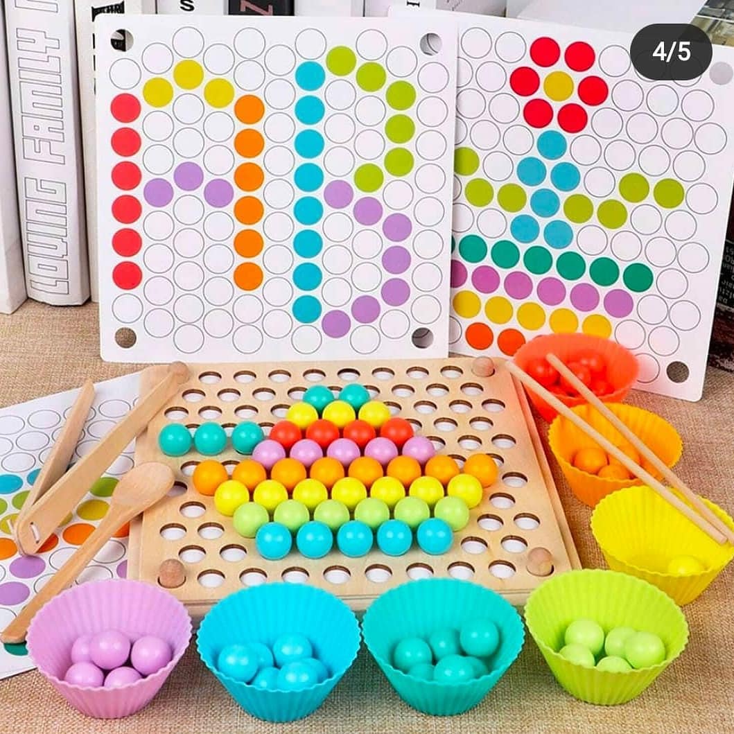 ❤ DEVELOP BASIC LIFE SKILLS: Let your child learn how to use chopsticks, spoons and tongs through games. Use toothpicks and clips to hold the beads, place the beads into the panel slot, and exercise your baby's hand-eye coordination and hand movements.