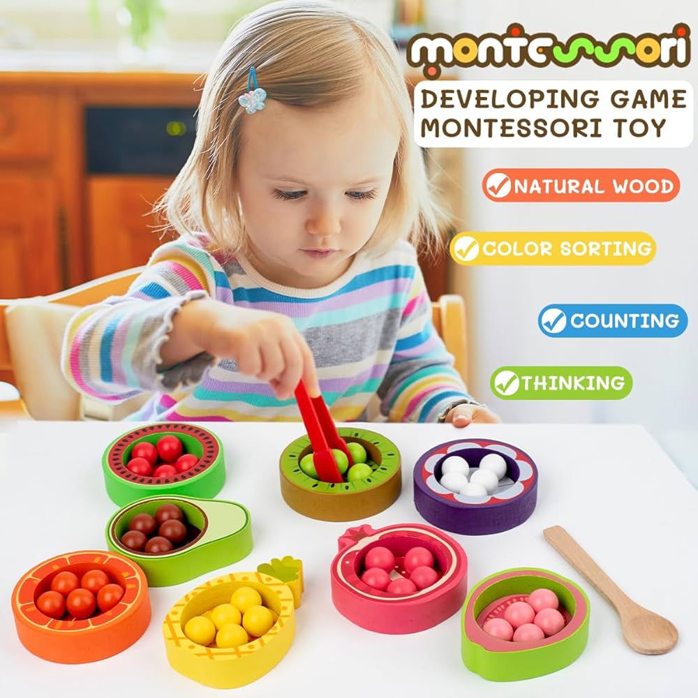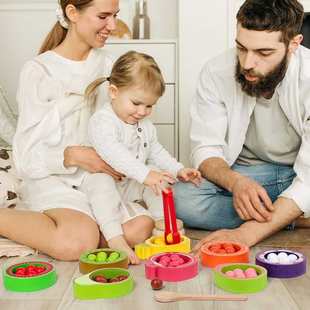 Can help children develop motor coordination while having fun playing with colorful beads, sorting cups and tongs set.