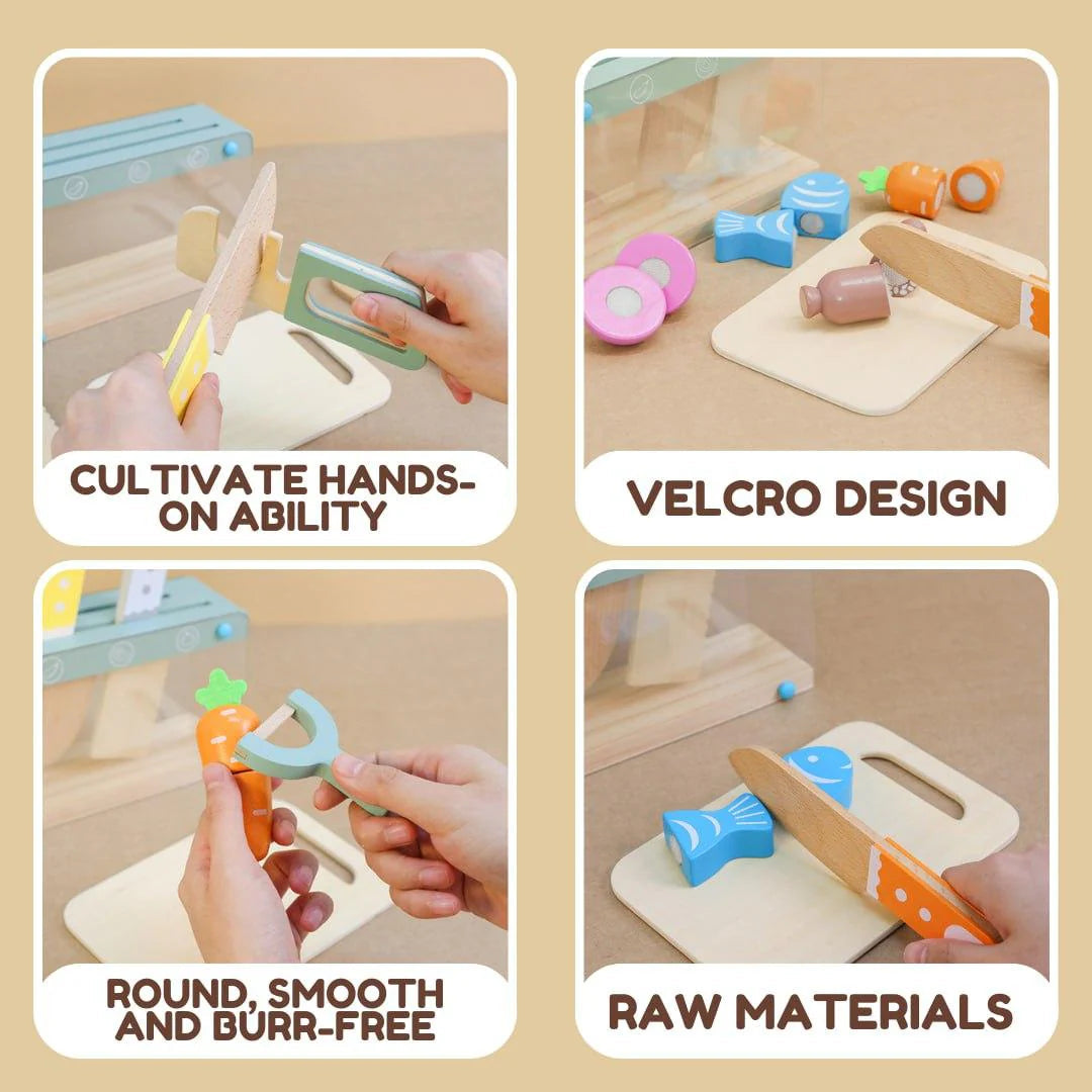 Nurture your child's imagination and social development through imaginative play with these durable, lightweight, and comfortable wooden cooking tools. They are designed to withstand frequent use, ensuring a positive user experience, and feature unique crocodile and wood textures, providing an interactive and nature-inspired experience for children. The ergonomic grip helps improve children's fine motor skills while having fun in the kitchen.