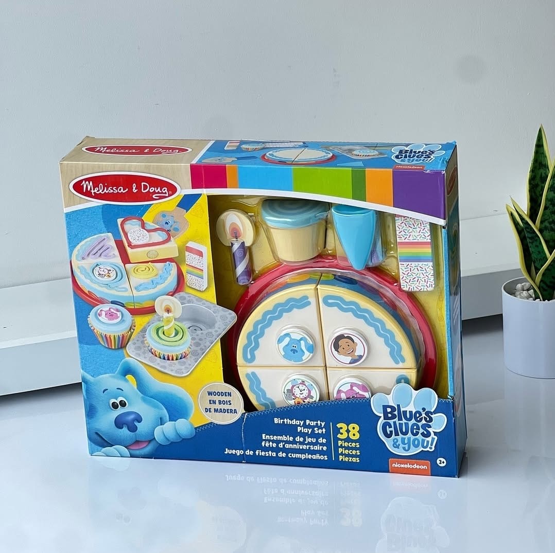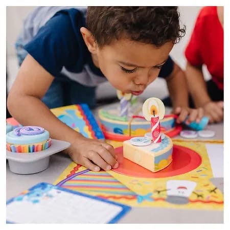 Celebrate birthdays and special occasions with this 38-piece Blue’s Clues & You! play set with 2 wooden cupcakes and a 4-piece wooden cake to decorate with colored cords and wooden toppings