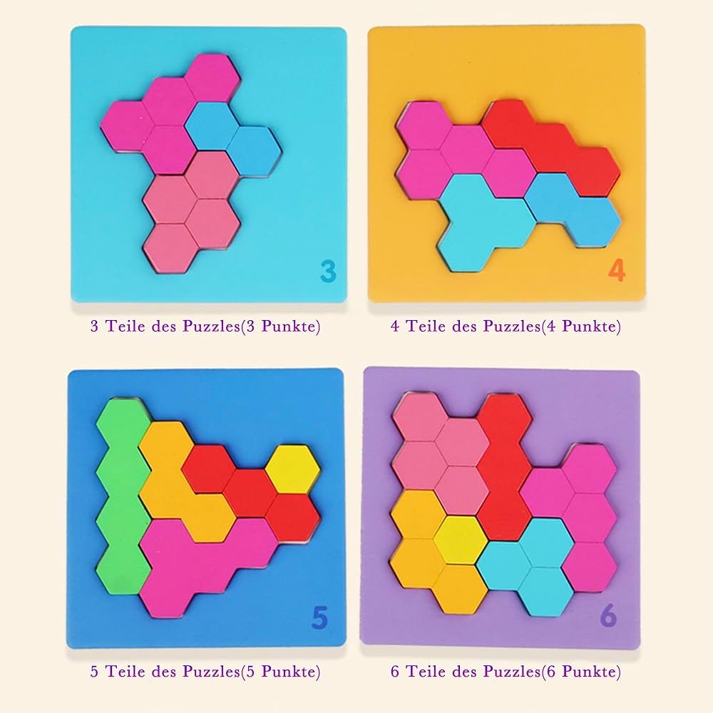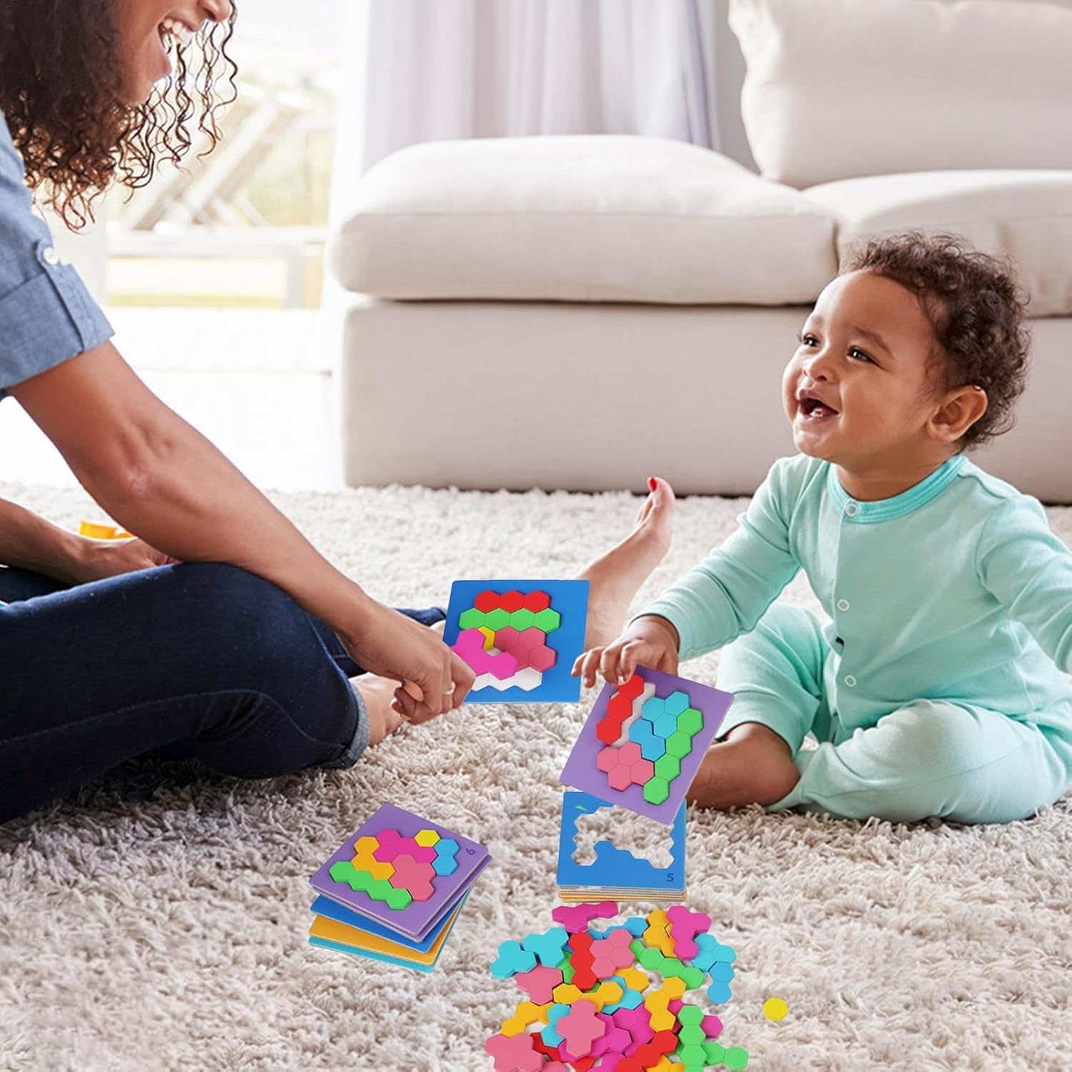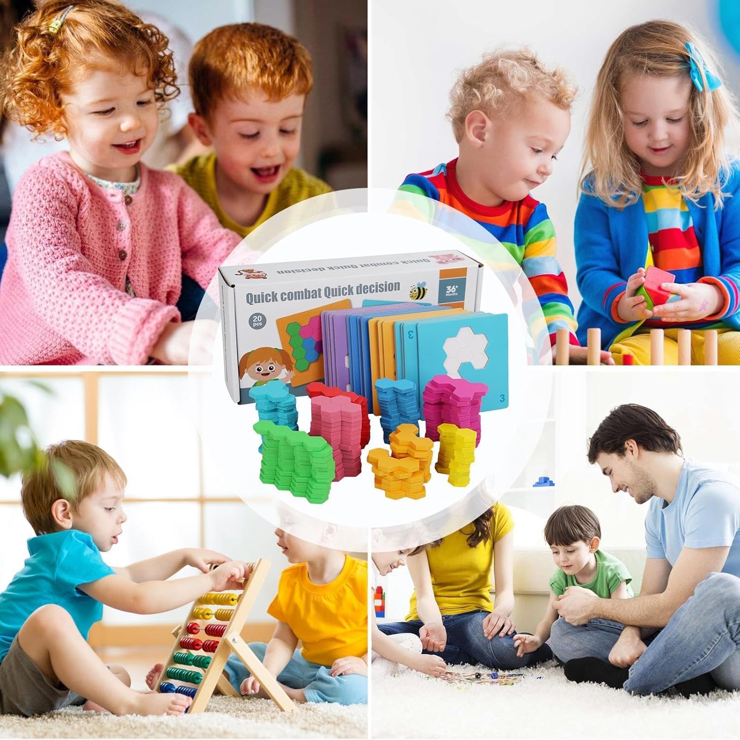Multiple Vibrant Colors: Featuring brightly colored wooden blocks, this puzzle captivates children’s attention while helping them recognize and differentiate shapes and colors, boosting visual sensory development.