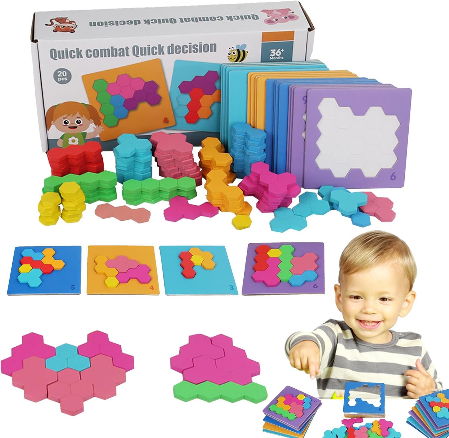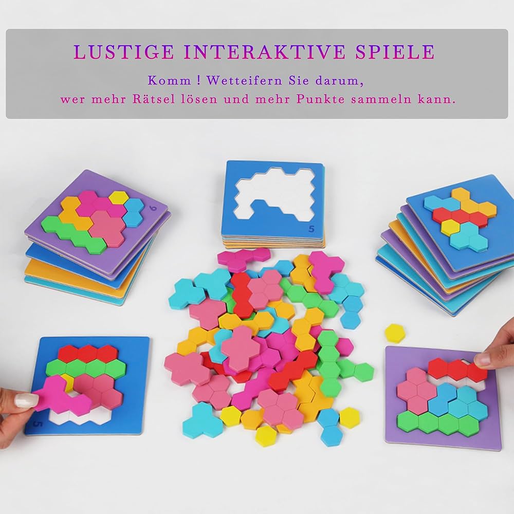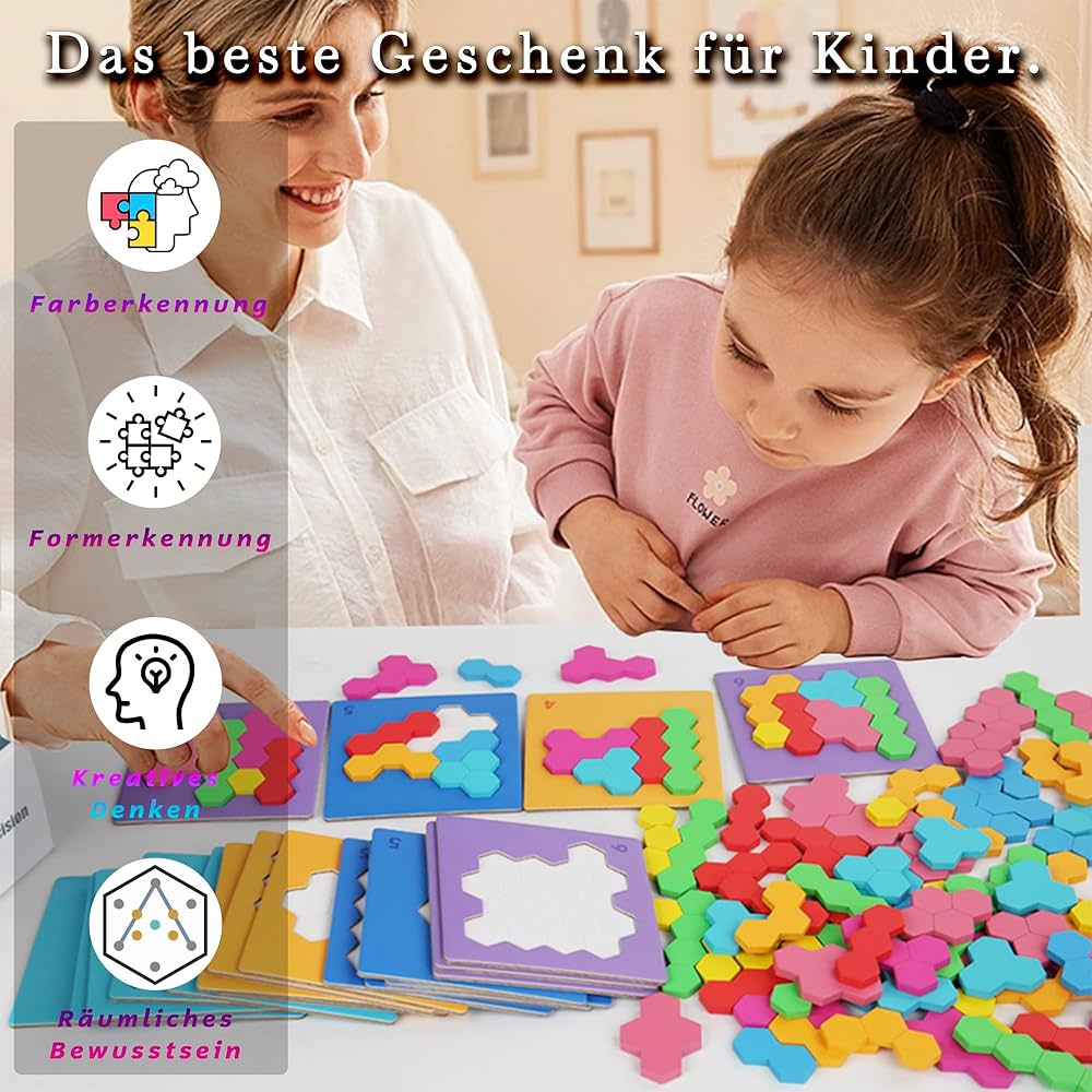 Multiple Vibrant Colors: Featuring brightly colored wooden blocks, this puzzle captivates children’s attention while helping them recognize and differentiate shapes and colors, boosting visual sensory development.