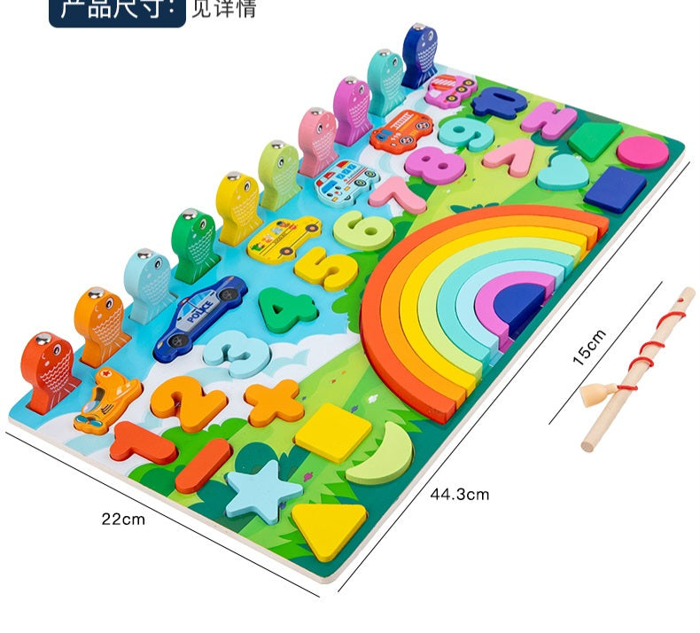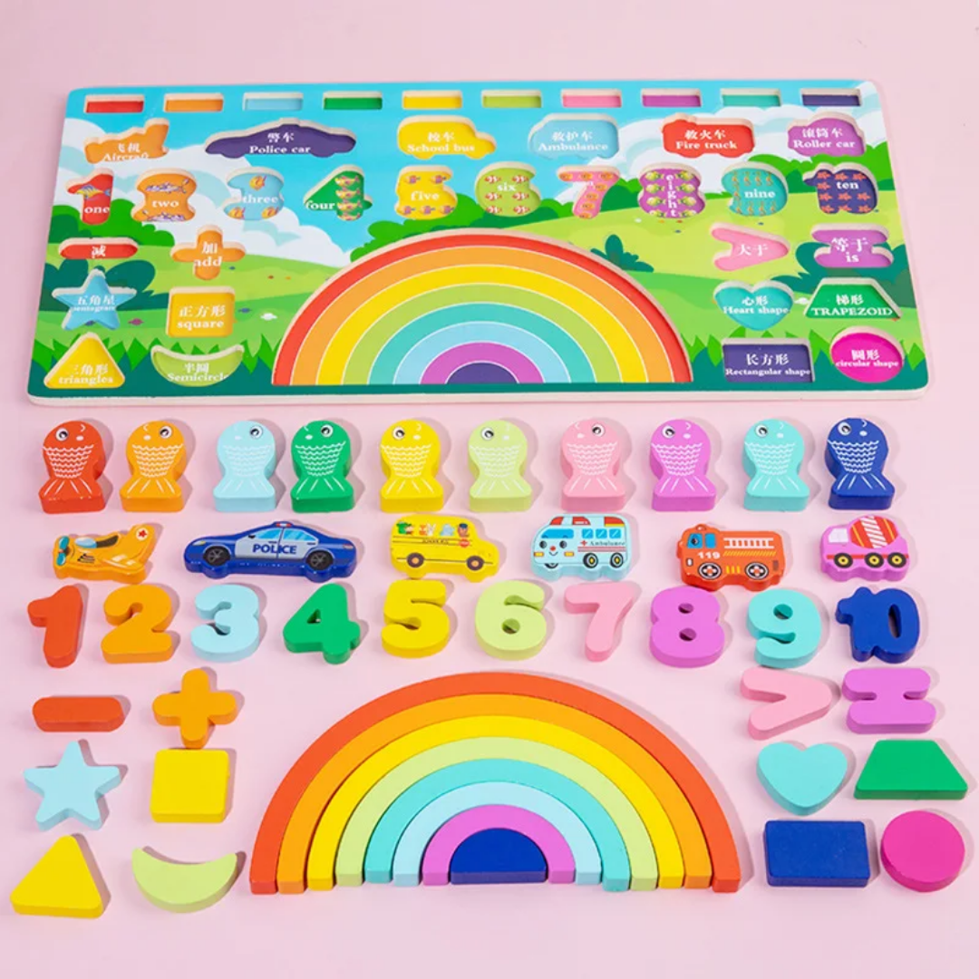5 in 1 Rainbow Board, an educational toy for young children. It's designed to teach various skills through interactive play.