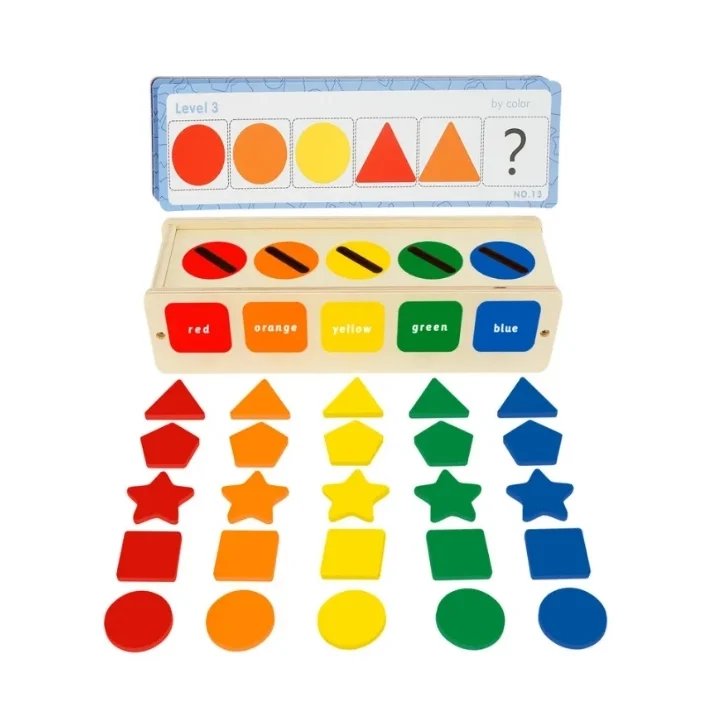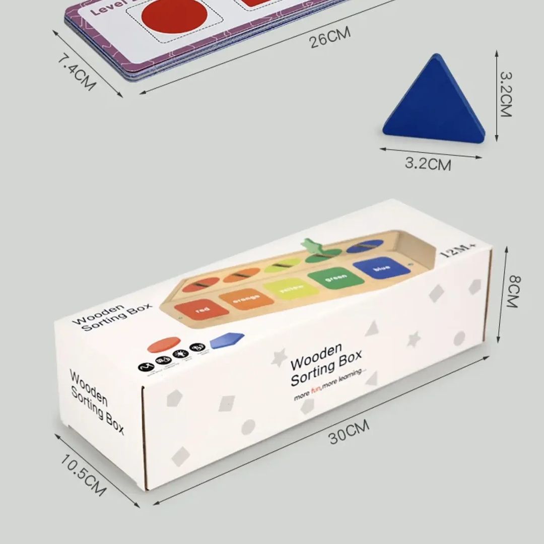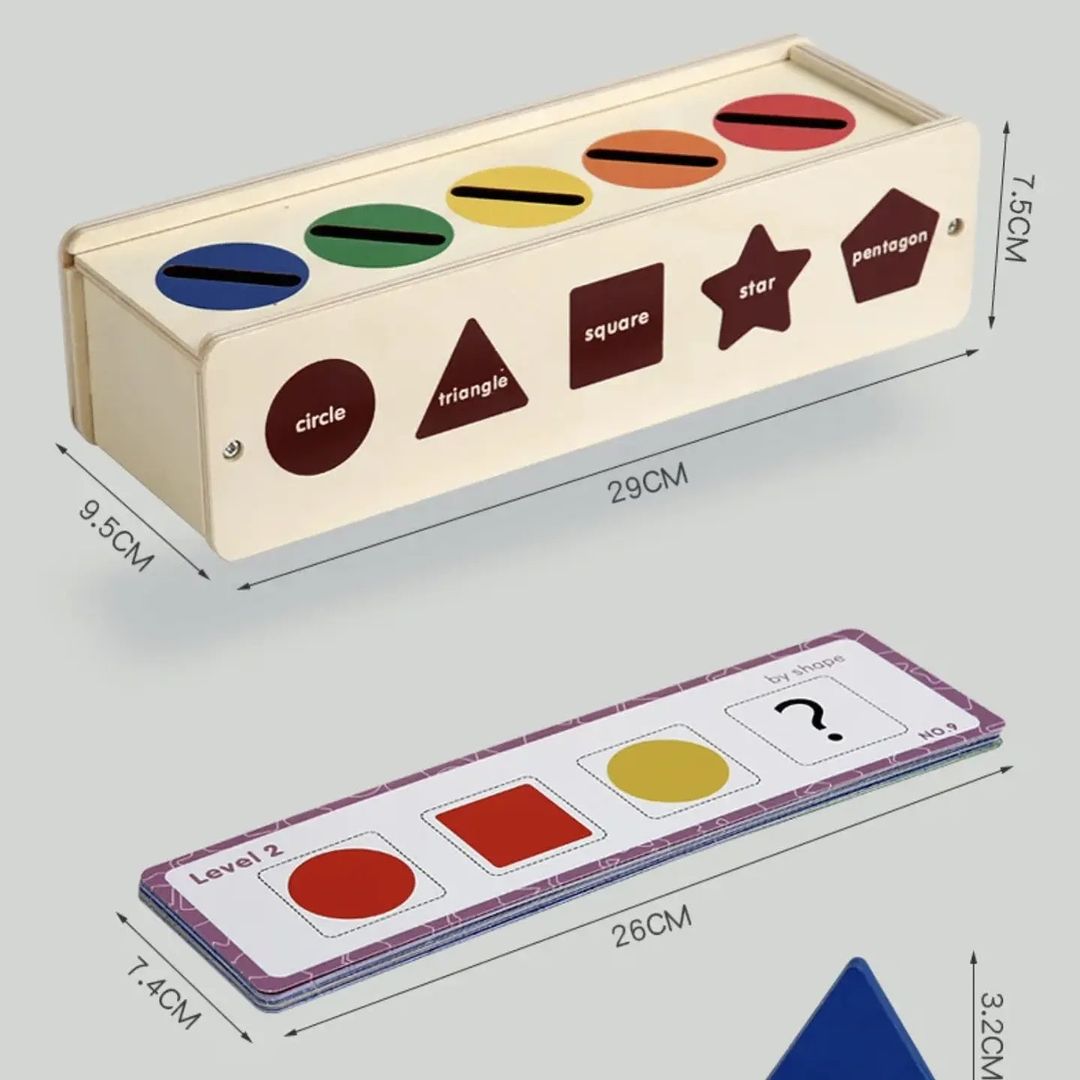 Montessori Shape Sorting Box, an educational toy designed for toddlers. It is used for learning shapes and colors.