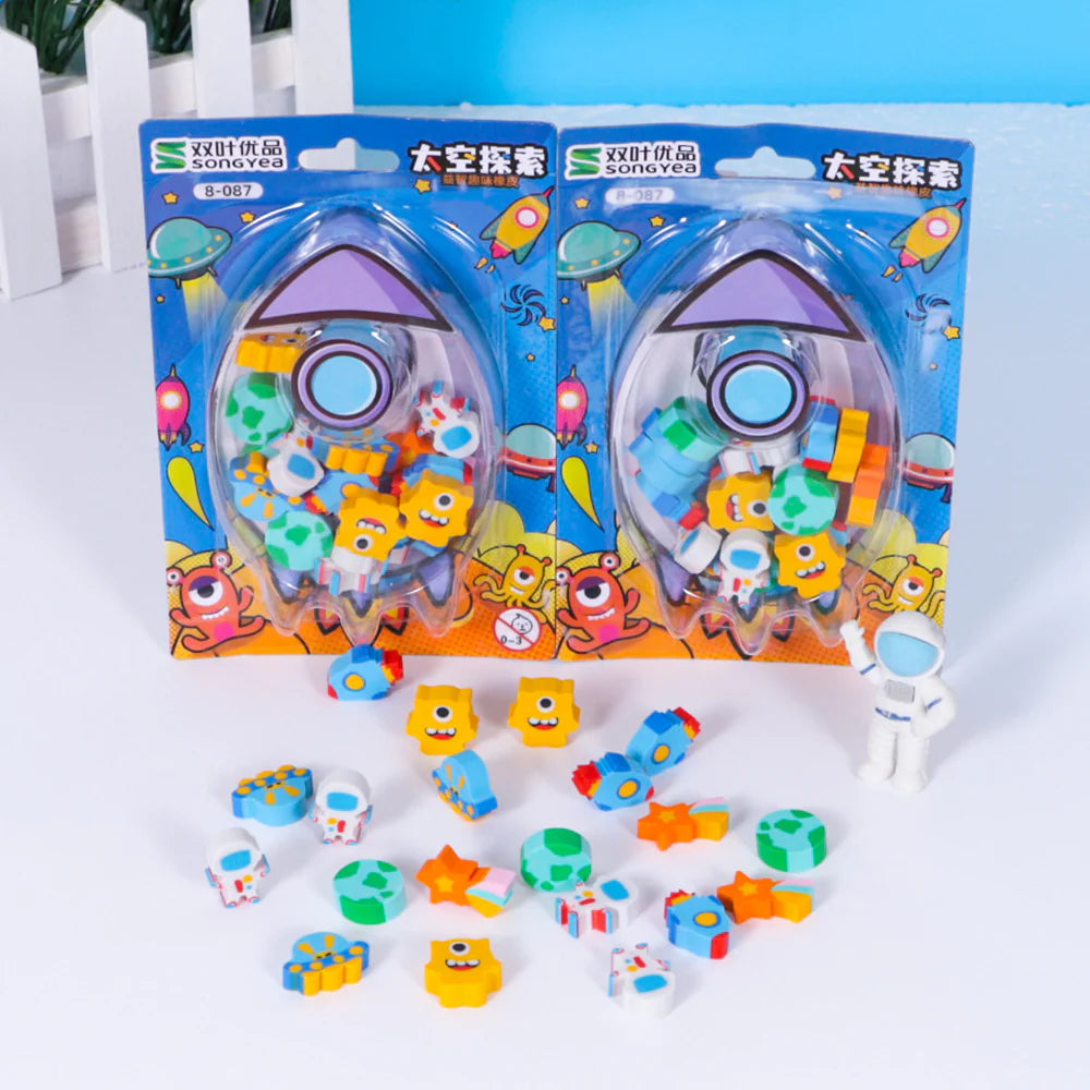 - Mini Fast Food/Space (Each Fast Food / Space Shape Packet contain 18 Pcs. Different Shapes Fast Food Eraser).