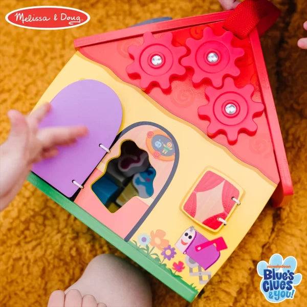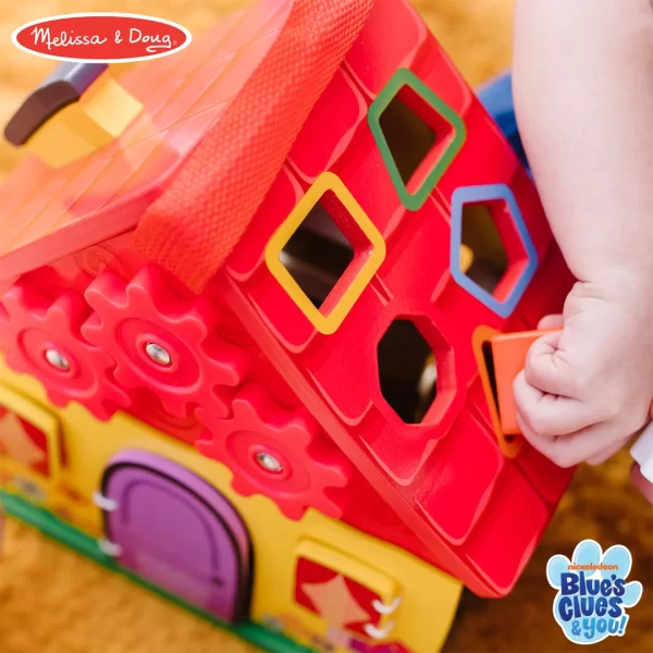 Take-along Blue's Clues & You! shape-sorter house with built-in handle, 3 gears to spin, bungee-hinged flaps, and a 9-piece double-sided flip puzzle