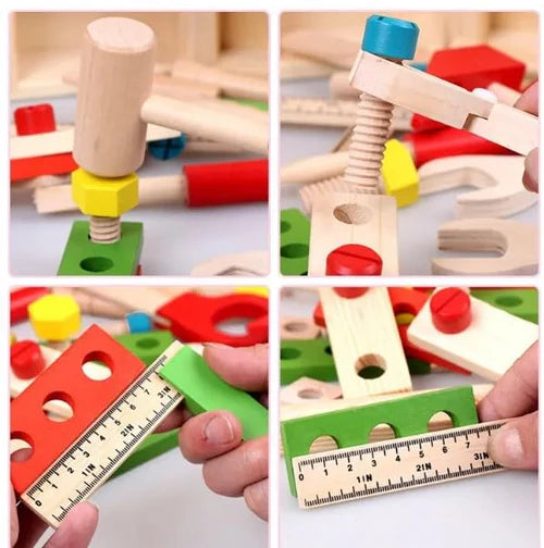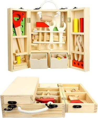 Hours of Fun: Watch as your little ones immerse themselves in imaginative play, building, and creating with this versatile tool set. Whether they are aspiring builders, engineers, or just curious minds, this Children's Wooden Toy Tool Box provides hours of educational and entertaining fun.