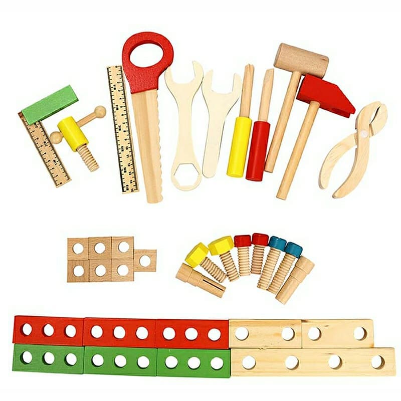 Wooden Children's Tool Box: Designed for children aged 3 years and up, this wooden toy comes with a sturdy storage box and includes hammers, screwdrivers, rulers, wrenches, pliers, and various wooden parts. It offers a hands-on experience, allowing kids as young as 2 years to explore different toolboxes and handle various tools.