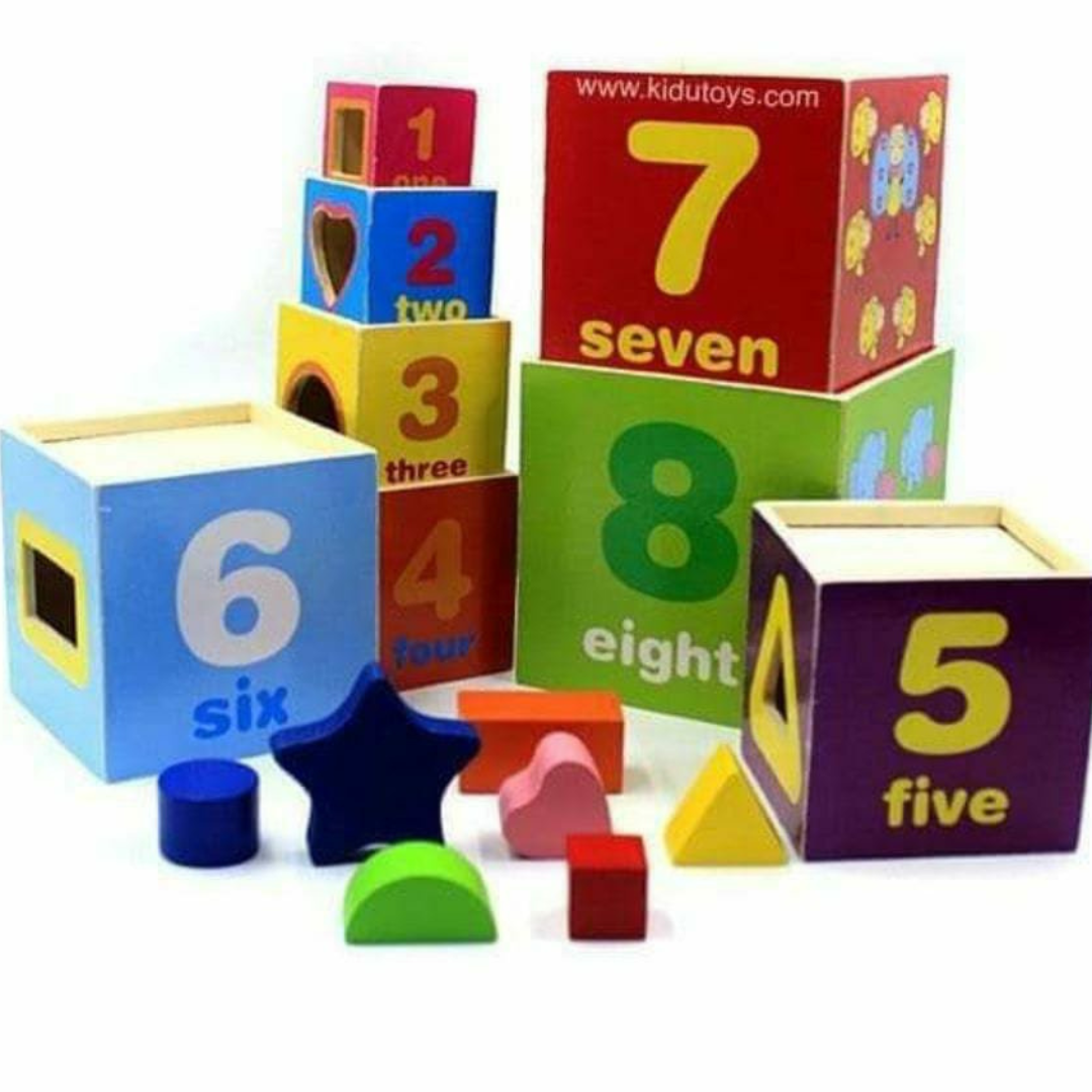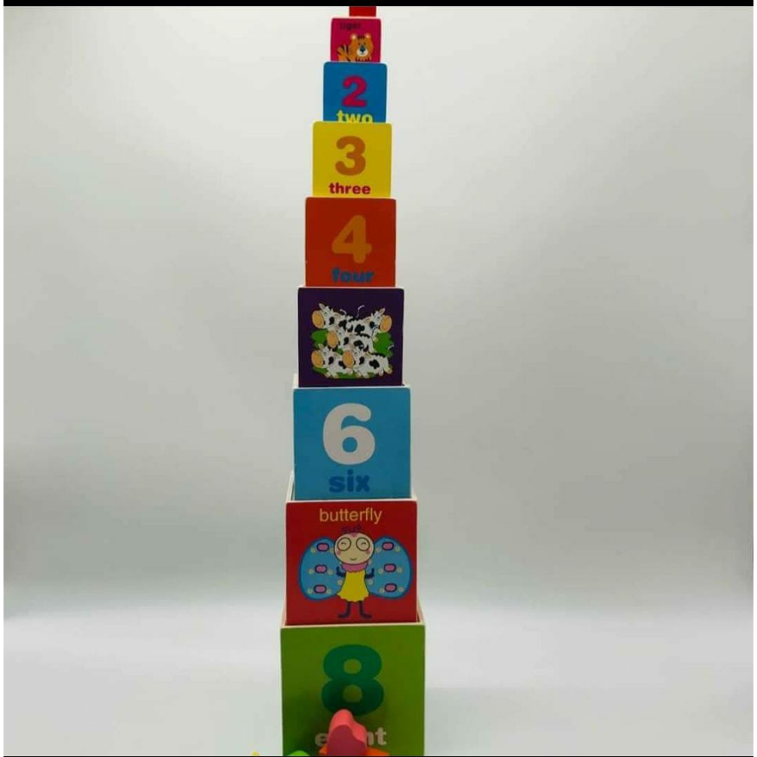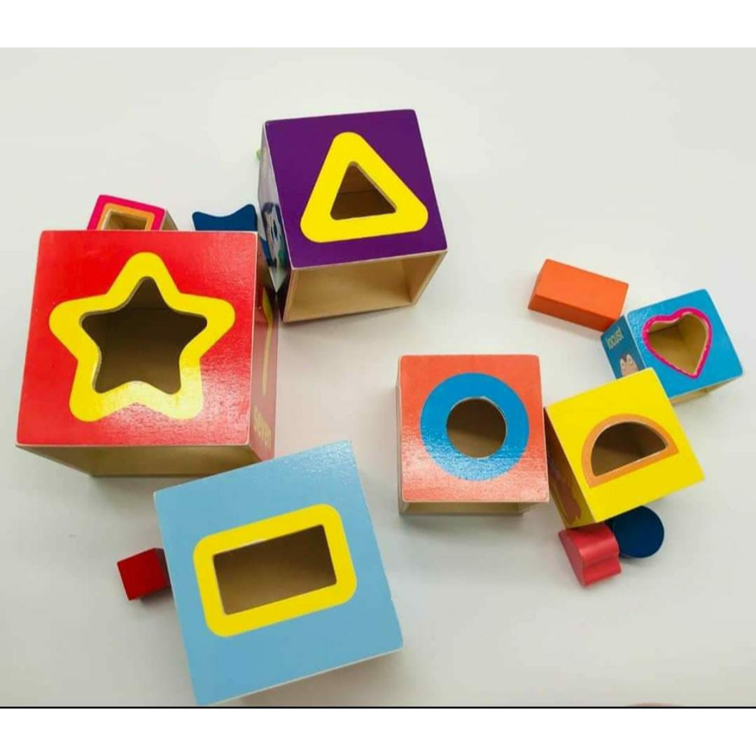 Wrap the Box" or "Stack N' Learn Cubes". These toys typically consist of several wooden boxes of varying sizes that can be stacked or nested together.